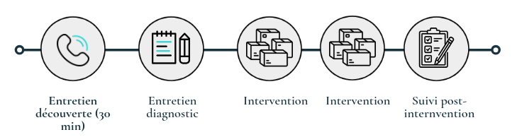 Etape 3 : le(s) intervention(s) : on se retrousse les manches et on passe à l’action pour trier, désencombrer et réorganiser. Une ou plusieurs séances, nous l'avons défini en amont.